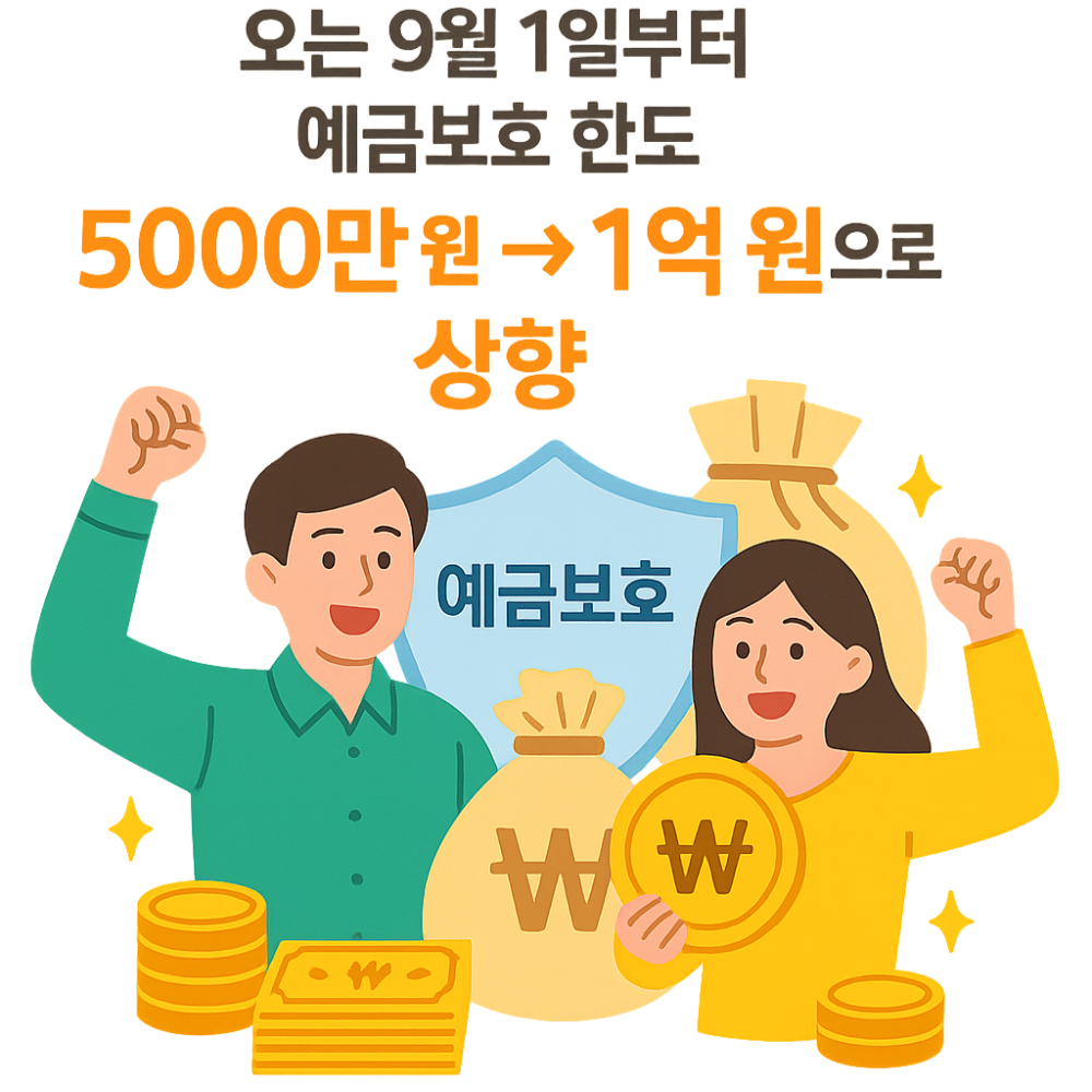 2025년 9월 1일부터 예금자보호제도의 보호 한도가 기존 5,000만 원에서 1억 원으로 상향됩니다.