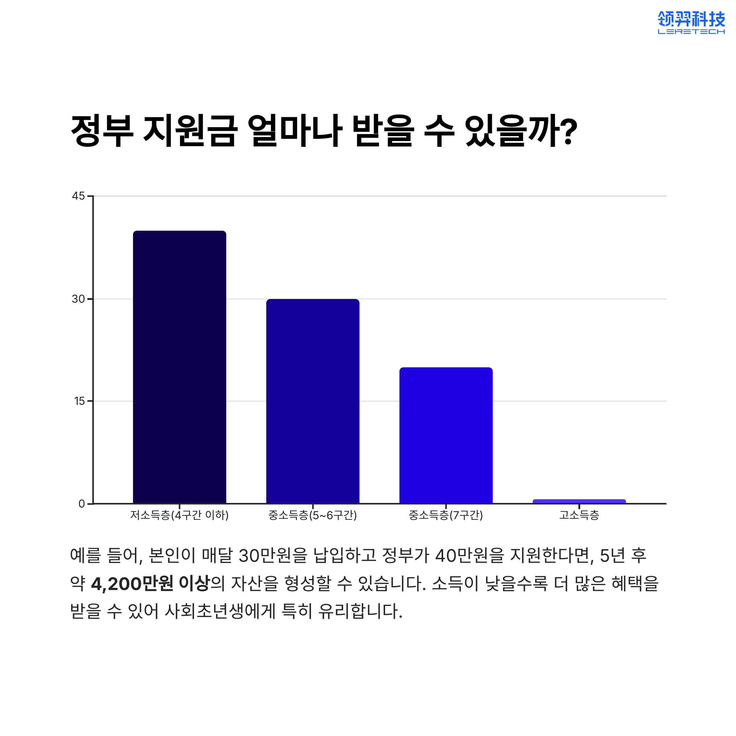 - 저소득층(소득 4구간 이하): 정부지원금 월 최대 40만 원