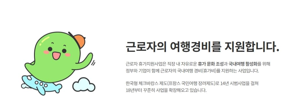 문화체육관광부와 한국관광공사는 근로자의 휴가문화 확산과 국내 관광 활성화를 위해 근로자휴가지원사업을 운영하고 있습니다. 이 제도는 근로자와 기업, 정부가 함께 여행 경비를 적립해 국내여행을 보다 저렴하게 즐길 수 있도록 돕는 프로그램입니다.