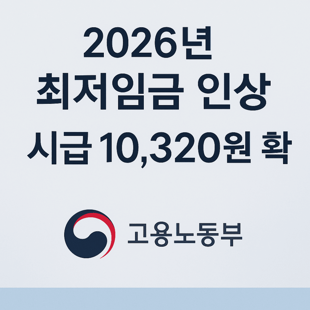 고용노동부는 2026년 적용 최저임금을 시급 1만 320원으로 2025년보다 290원 인상(2.9%)된 수준으로 확정 고시했습니다.
