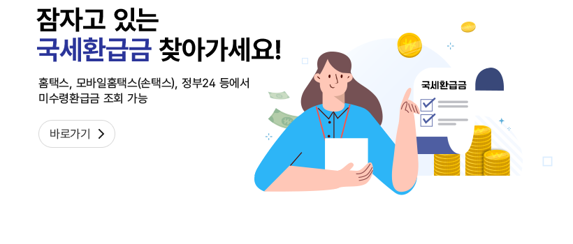 홈택스, 손택스 앱, 챗봇 등으로 환급금을 조회해 보세요.